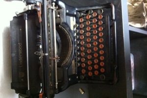 L’Underwood semble être un modèle des années 20 (le numéro de série, sur le haut du châssis, côté droit, sous le chariot permettrait d’être plus précis.) Son prix dépend surtout de son état: de 10-15 euros si elle ne fonctionne pas, que ses touches sont illisibles, sa peinture et ses chromes écaillés et le métal rouillé en dessous, à 80-100 euros complète et en bon état de présentation et de fonctionnement (prix maximum réaliste, en faisant abstraction des 200, 500, 800 euros ou plus que quelques doux rêveurs espèrent vendre leur machine sur Leboncoin…) D’après ta photo, et sous réserve que la machine fonctionne, je tablerais sur la tranche des 30-40 euros.