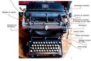 Bref, ma belle Japy 3 marche parfaitement. Et donc j’ai pu trouver presque toutes les fonctions qu’elle possède, et découvrir l’utilité des manettes et boutons dont le sens m’échappait. J’ai tenté de résumer ça sur une photo que je joins à ce sujet. L’esthétique est critiquable, mais on comprend assez bien le schéma. Je ferai quelque chose de plus beau prochainement, car je doute qu’il existe encore, aujourd’hui, un mode d’emploi de cette machine fort ancienne.
