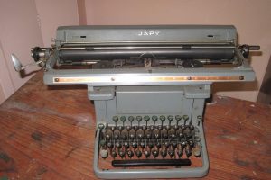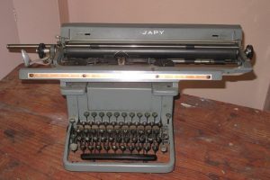Enfin dernier objet dont j’aimerais connaître la valeur marchande afin d’avoir une idée : une machine à écrire Japy en fonte avec un long chariot.