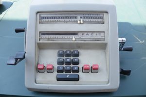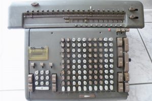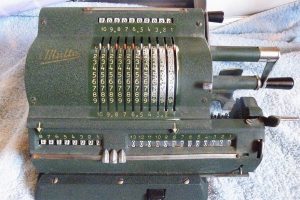 – une Friden STW 10 (achetée là aussi une bouchée de pain comme étant HS, mais en fait juste grippée et sans cable, mais facile à refaire !) : une touche ne fonctionne pas, la « ENTER DIVD », mais le reste est ok. Une machine vraiment impressionnante par son poids et son fonctionnement.