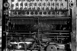 - je suis surpris de voir (pour l’époque) que le capot supérieur à clipper (cache des rubans encreurs) amovible est clairement en métal injecté sous pression type zamac…